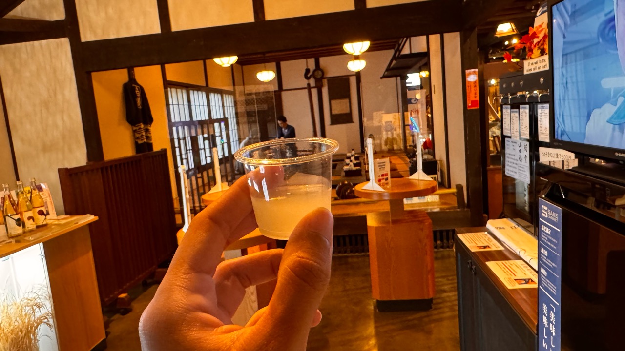 ひと通り見学し終わると、白鶴の高級日本酒の試飲コーナーがある。500円を払うと、お猪口が貰える。